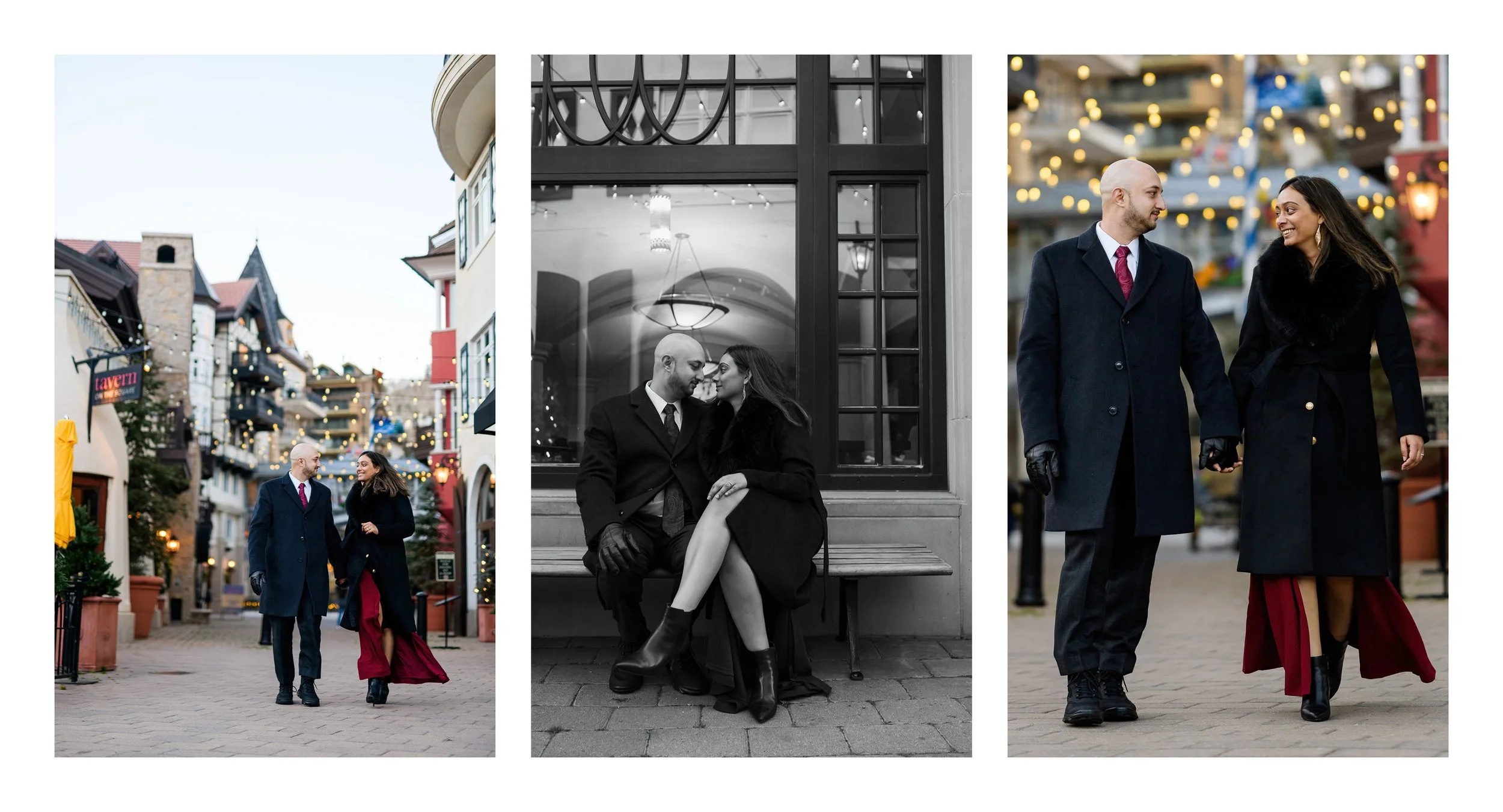After your mountaintop proposal, take some time to celebrate in Vail Village with your photographer. The village offers a stunning backdrop of the mountains, which is perfect for capturing post-proposal photos. Vail has a variety of restaurants, from casual spots to fine dining, where you can enjoy a celebratory meal. The Village itself is especially picturesque during the winter months when everything is decorated for the holidays!